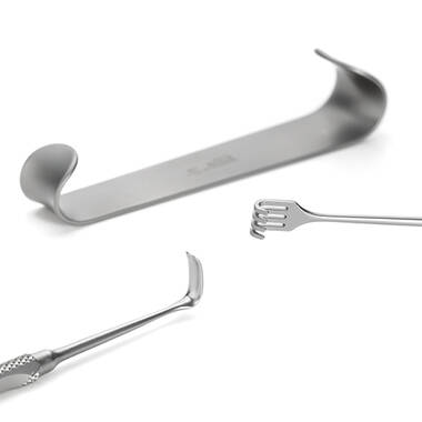 With a wide range of different retractors (LANGENBECK, KOCHER, VOLKMANN….), Aesculap offers a big product portfolio. The retractors are available with different working ends and handles.